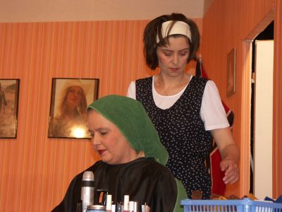 in Haarspray, Make Up und Zeit in Truvy Jones "Schönheitssalon", dem Treff- und Mittelpunkt sowie Informationszentrum.